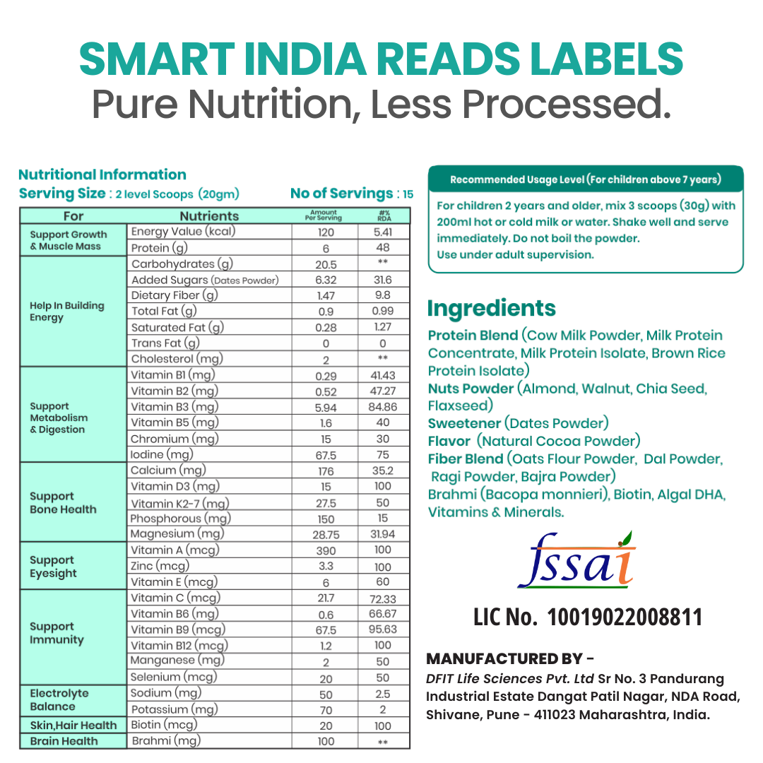 🛡️ Builds Strong Immunity with power-packed grains like ragi & bajra and a complete blend of 25 vital vitamins & minerals — so your child can play, learn, and thrive!