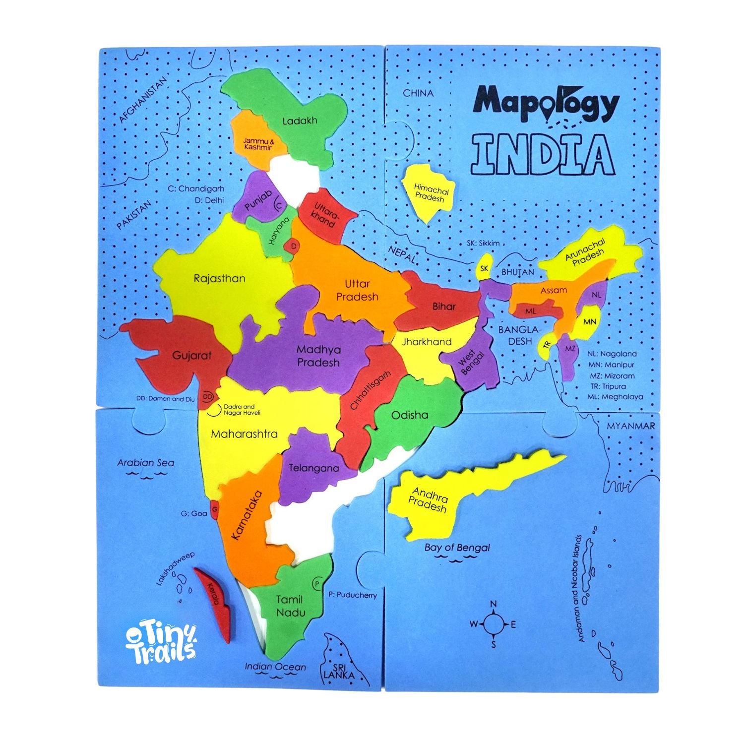 - India Map Puzzle – 36 colorful, easy-to-assemble pieces representing each state.