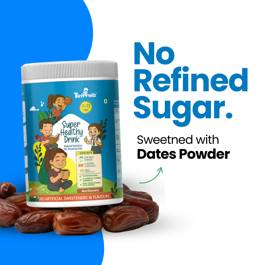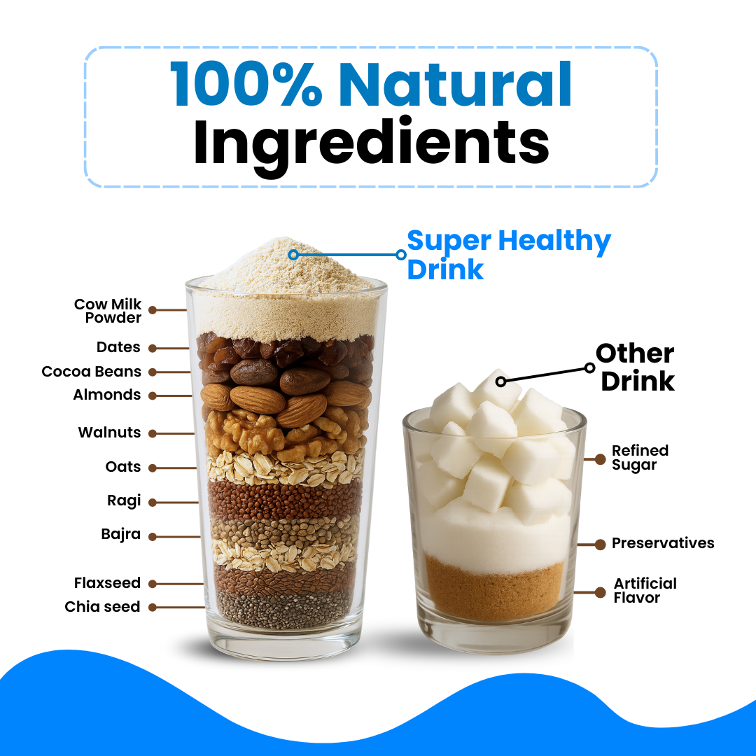 Start the day with energy or enjoy it as a tasty milkshake β Super Healthy Drink turns milk into a powerhouse of growth and flavor!